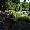 Outside there is a patio and gazebo next to a tiny pond with a stream that empties into it with several gurgling waterfalls. There is a covered outdoor cooking area on which much of our food is cooked. On the lawns, there are horseshoes and giant croquet.