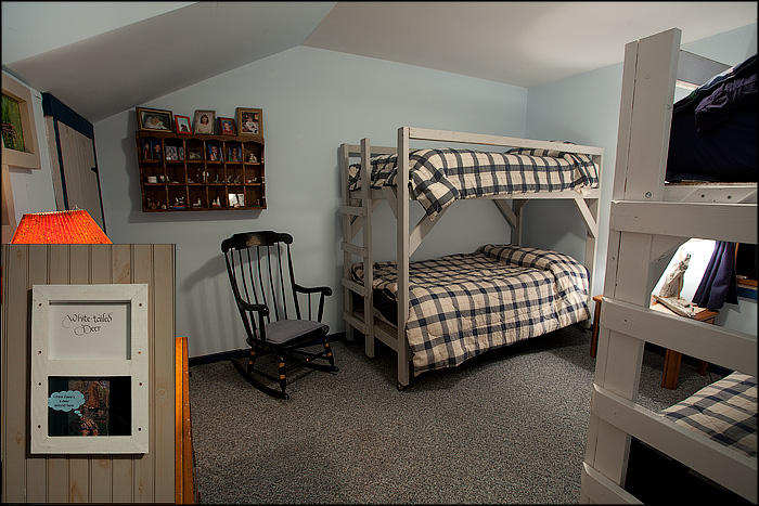 We are a center that can excel with small retreats. We can take up to 14 people. We have 4 bedrooms that can be configured to take 4 couples or 14 individuals. The bedrooms are decorated on the themes of white-tailed deer, black bear, black squirrel and bald eagle The bunk beds are equipped with ladders and safety rails, or the beds can be put together to make king-sized beds for couples.